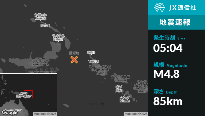 | 震源地 | パプアニューギニアのKokopoから南東173kmの地点 |