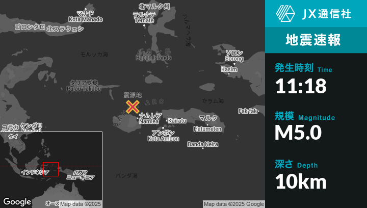 | 震源地 | インドネシアのSananaから東南東115kmの地点 |