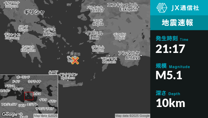 | 震源地 | ギリシャのAmorgósから南西26kmの地点 |