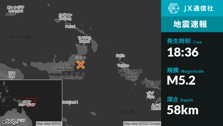 | 震源地 | パプアニューギニアのKokopoから南南西140kmの地点 |