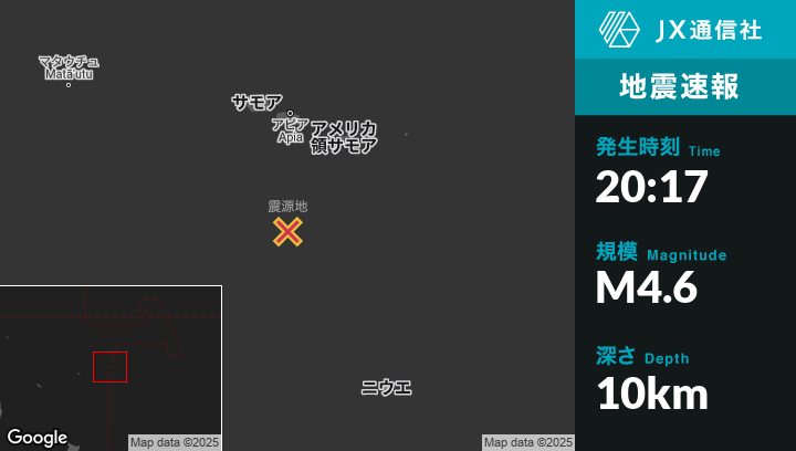 | 震源地 | トンガのHihifoから東210kmの地点 |
