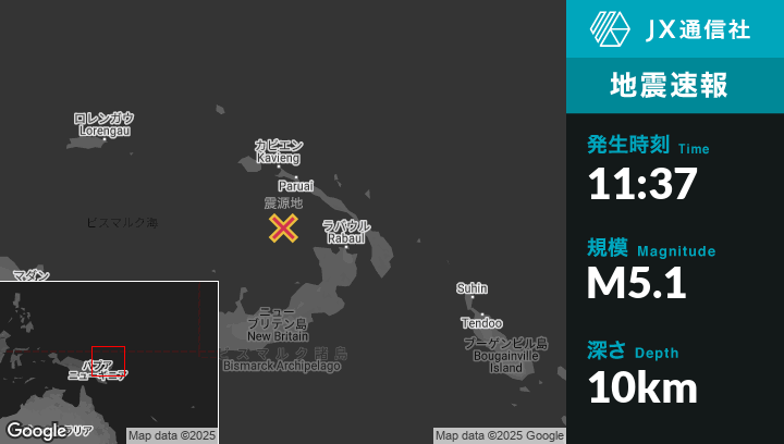 | 震源地 | パプアニューギニアのKaviengから南123kmの地点 |