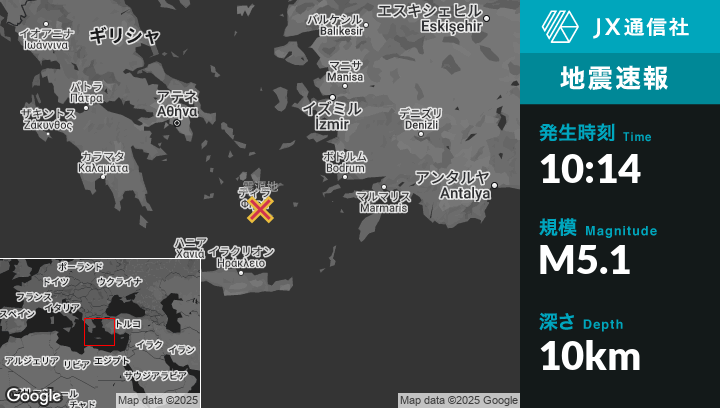 | 震源地 | ギリシャのFiráから北東18kmの地点 |