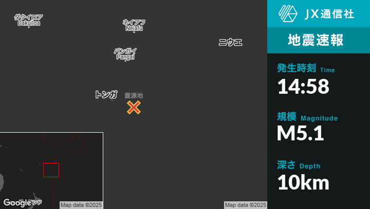 | 震源地 | トンガの‘Ohonuaから東南東102kmの地点 |