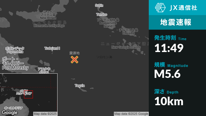 | 震源地 | パプアニューギニアのSamaraiから北東290kmの地点 |