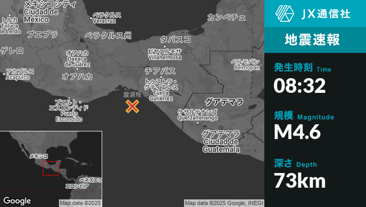 | 震源地 | メキシコのLa Gloriaから南南西61kmの地点 |