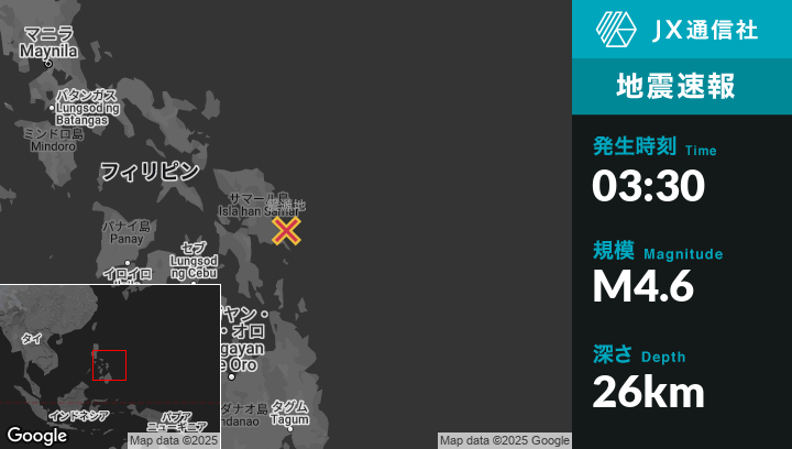 | 震源地 | フィリピンのHernaniから北東20kmの地点 |