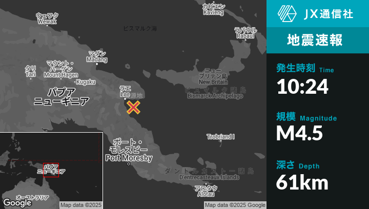 | 震源地 | パプアニューギニアのLaeから東南東46kmの地点 |