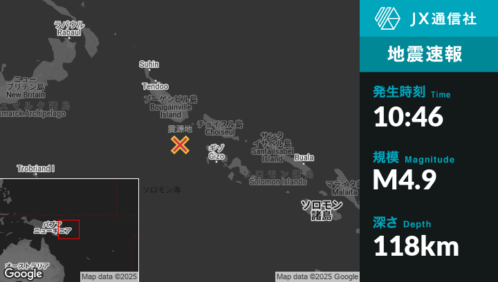 | 震源地 | パプアニューギニアのPangunaから南127kmの地点 |