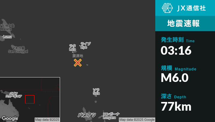 | 震源地 | ソロモン諸島のLataから南南東84kmの地点 |