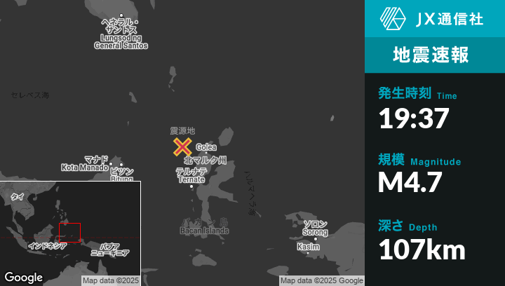 | 震源地 | インドネシアのTobeloから西北西110kmの地点 |