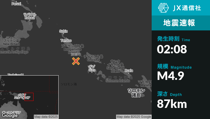 | 震源地 | パプアニューギニアのPangunaから南92kmの地点 |