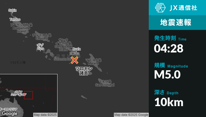 | 震源地 | ソロモン諸島のBualaから南南西62kmの地点 |