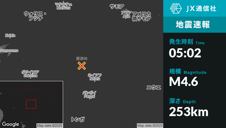 | 震源地 | トンガのNeiafuから北西161kmの地点 |