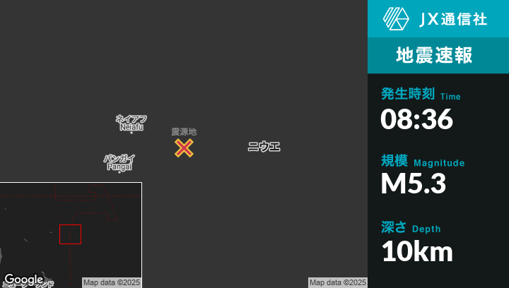 | 震源地 | トンガのNeiafuから東南東175kmの地点 |