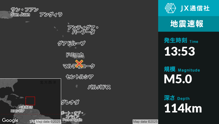 | 震源地 | マルティニークのLe Lorrainから北北東14kmの地点 |