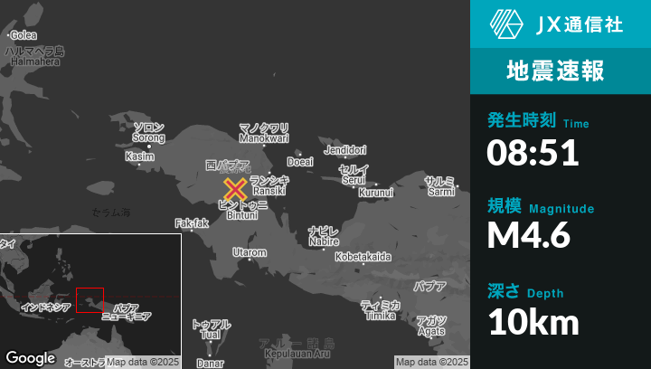 | 震源地 | インドネシアのBintuniから北北西40kmの地点 |