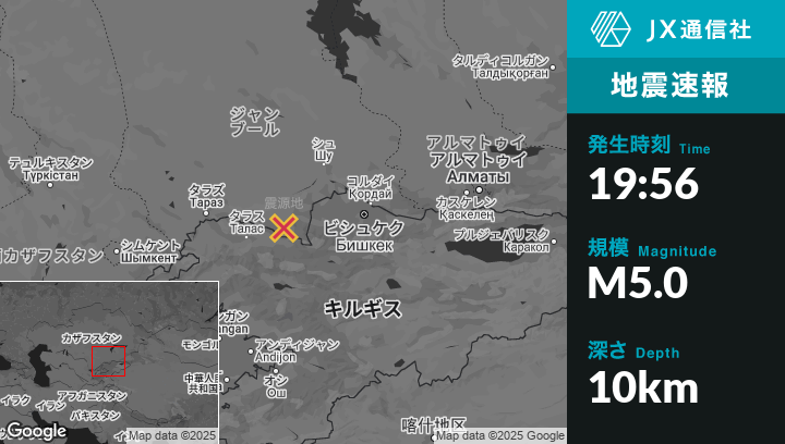 | 震源地 | カザフスタンのMerkeから西南西22kmの地点 |
