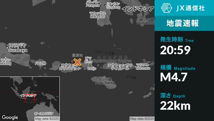 3月28日 20:59頃、インドネシアのPototanoから東北東54kmの地点でM4.7の地震がありました。