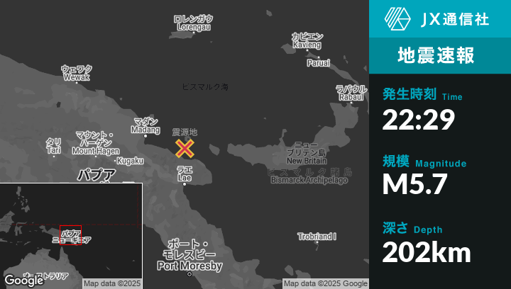 | 震源地 | パプアニューギニアのLaeから北137kmの地点 |