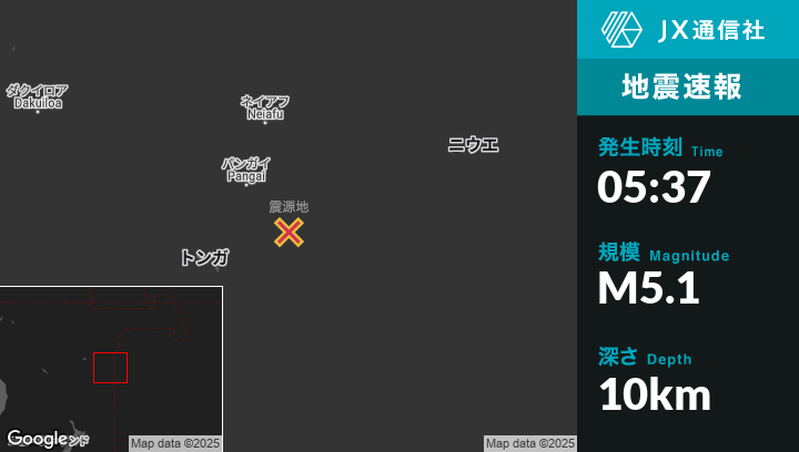 | 震源地 | トンガのPangaiから南東121kmの地点 |