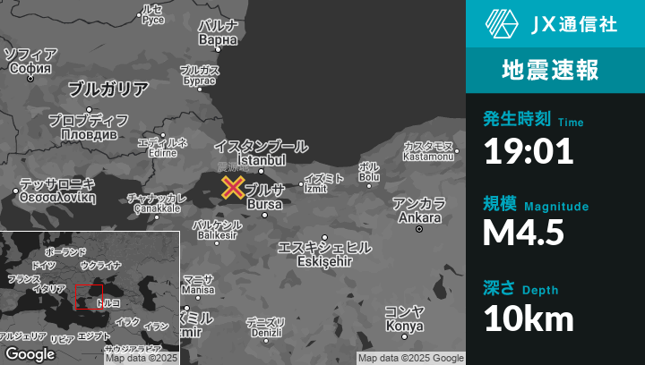 4月23日 19:01頃、トルコのSelimpaşaから南南西29kmの地点でM4.5の地震がありました。