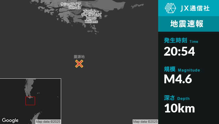 | 震源地 | アルゼンチンのUshuaiaから南252kmの地点 |
