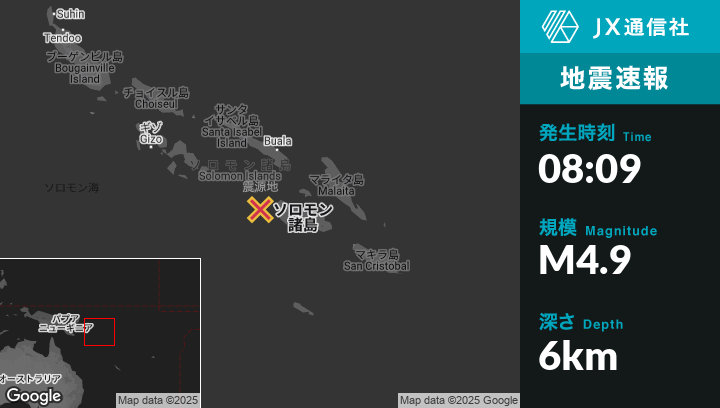 | 震源地 | ソロモン諸島のMalangoから北西66kmの地点 |