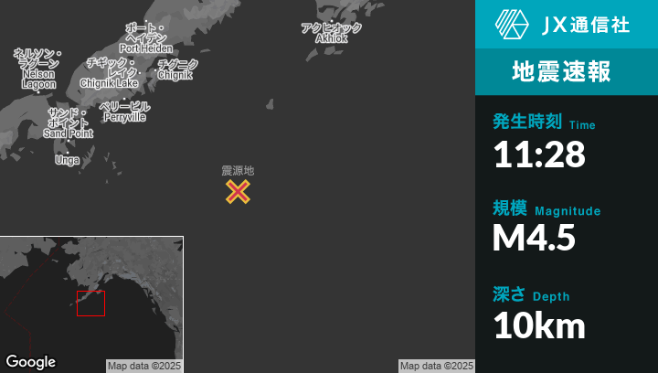| 震源地 | アラスカのChignikから南東216kmの地点 |
