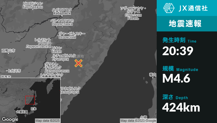 | 震源地 | ロシアのVostokから南東39kmの地点 |