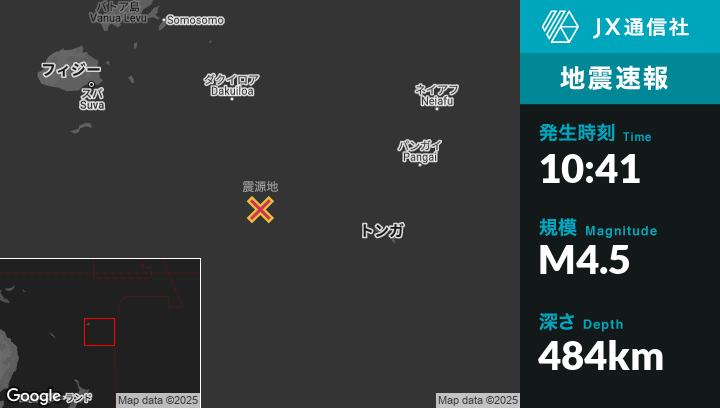 | 震源地 | トンガのHoumaから西北西273kmの地点 |