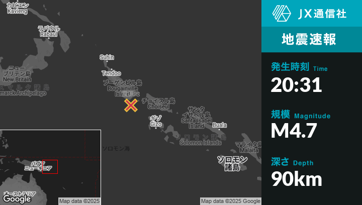 | 震源地 | パプアニューギニアのPangunaから南南東80kmの地点 |