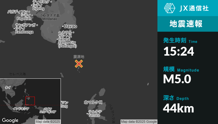 | 震源地 | フィリピンのSaranganiから南東175kmの地点 |