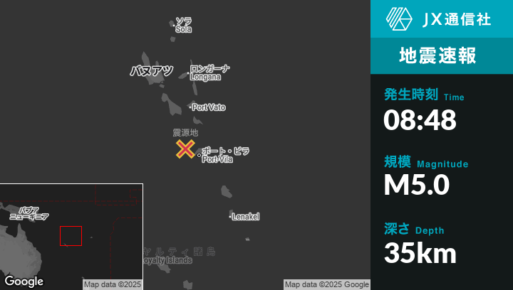 | 震源地 | バヌアツのPort-Vilaから北西56kmの地点 |