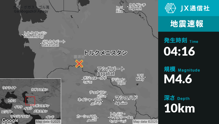 | 震源地 | トルクメニスタンのBaharlyから西29kmの地点 |