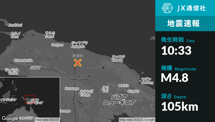 | 震源地 | パプアニューギニアのVanimoから南121kmの地点 |