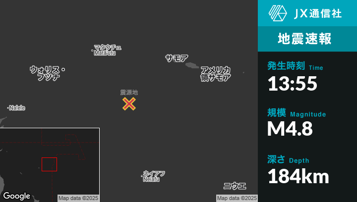 7月10日 13:55頃、トンガのHihifoから北西96kmの地点でM4.8の地震がありました。