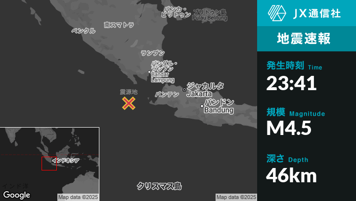 | 震源地 | インドネシアのLabuanから西167kmの地点 |