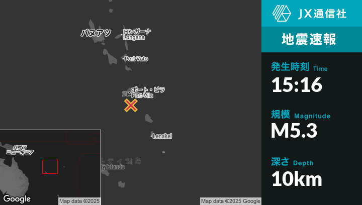 | 震源地 | バヌアツのPort-Vilaから南45kmの地点 |