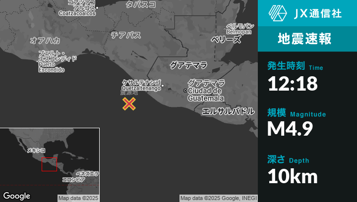 | 震源地 | メキシコのPuerto Maderoから南西85kmの地点 |