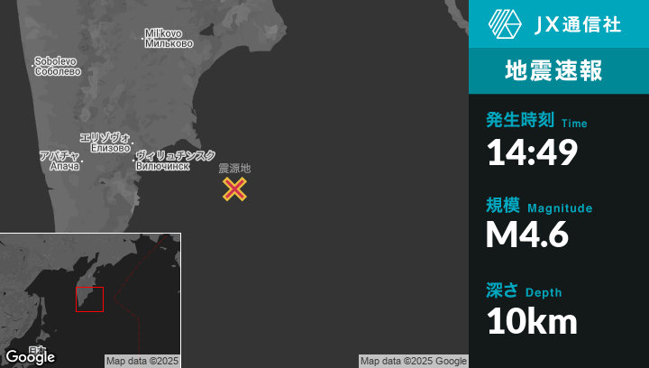 | 震源地 | ロシアのPetropavlovsk-Kamchatskyから東南東160kmの地点 |