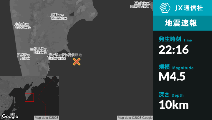 | 震源地 | ロシアのPetropavlovsk-Kamchatskyから東南東133kmの地点 |