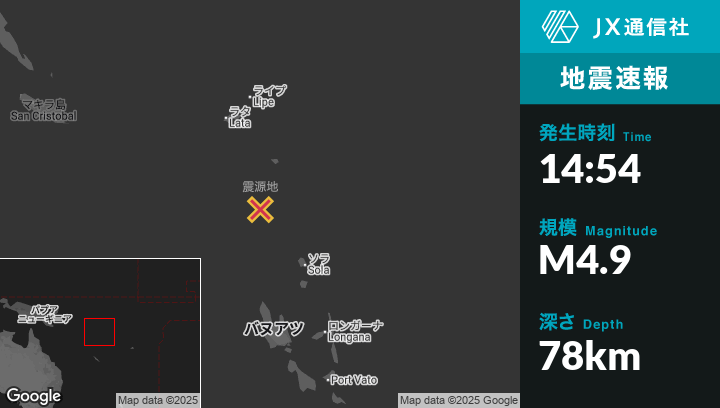 | 震源地 | バヌアツのSolaから北西181kmの地点 |