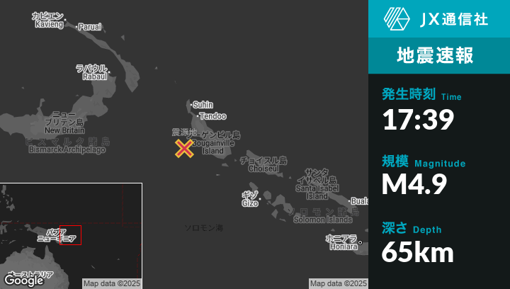 | 震源地 | パプアニューギニアのPangunaから西110kmの地点 |