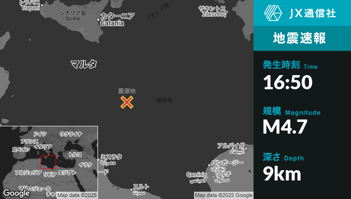 | 震源地 | マルタのMarsaskalaから南東215kmの地点 |