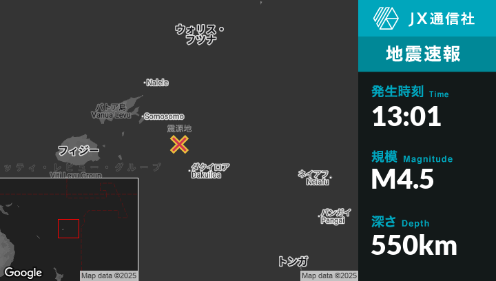| 震源地 | フィジーのLevukaから東北東208kmの地点 |