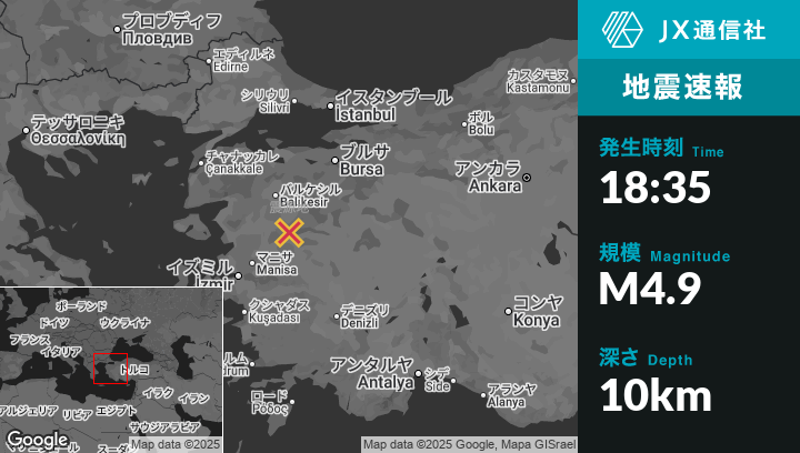 | 震源地 | トルコのSındırgıから南南西6kmの地点 |