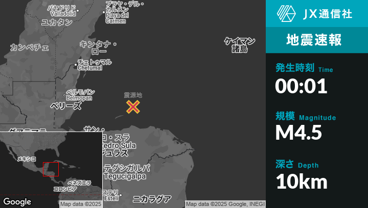 | 震源地 | ホンジュラスのSavannah Bightから北48kmの地点 |