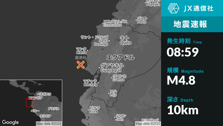 | 震源地 | エクアドルのSalinasから北西51kmの地点 |