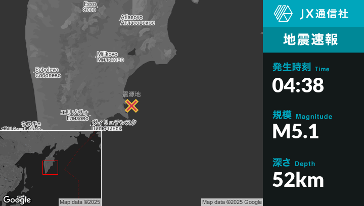 | 震源地 | ロシアのPetropavlovsk-Kamchatskyから東北東115kmの地点 |